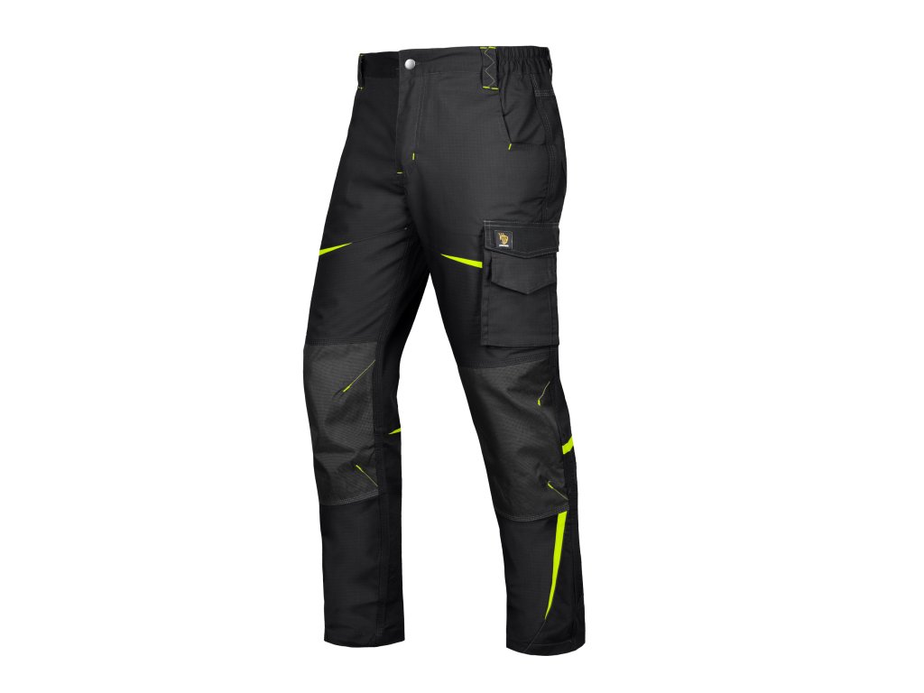 Tyto kalhoty jsou vyrobeny z vysoce kvalitní elastické strečové tkaniny s RIP-STOP vazbou, která se skládá z 58 % bavlny, 40 % polyesteru a 2 % spandexu a má gramáž 240 g/m². Mají řadu funkčních kapes, včetně dvou předních kapes, dvou dvojitých kapes na stehnech a dvou zadních kapes. Jejich extrémně praktický střih a strečový materiál poskytují maximální volnost pohybu. Oděruvzdorné výztuhy na nohavicích. Výztužné zapošití a trojité prošívání zvyšují odolnost. Jsou ideální pro práci i volnočasové aktivity. Moderní barvy a design. K dispozici ve velikostech 46-60.