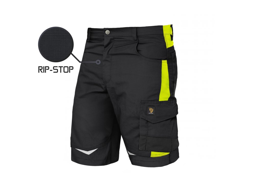 Krátké kalhoty HELICON jsou vyrobeny z odolné proti roztržení a oděru tkaniny RIP-STOP, která se skládá z 65% polyesteru a 35% bavlny, s gramáží 240g/m2. Jsou vybaveny funkčními kapsami, včetně: kapsy typu cargo s klopnou na suchý zip a další kapsičkou na zip, boční kapsy na nářadí s další kapsičkou na zip, dvou zadních kapes (jedna otevřená a jedna s klopnou na suchý zip) a dvou klasických předních kapes. Kalhoty se zapínají na zip a knoflík a mají gumu na bočních částech pasu, díky čemuž se lépe přizpůsobí postavě. Zesílení z materiálu typu OXFORD na kapsách chrání před oděrem. Další zesílení, švy a trhací prvky zvyšují odolnost kalhot. Diskrétní reflexní prvky. Moderní design a vysoký komfort nošení.