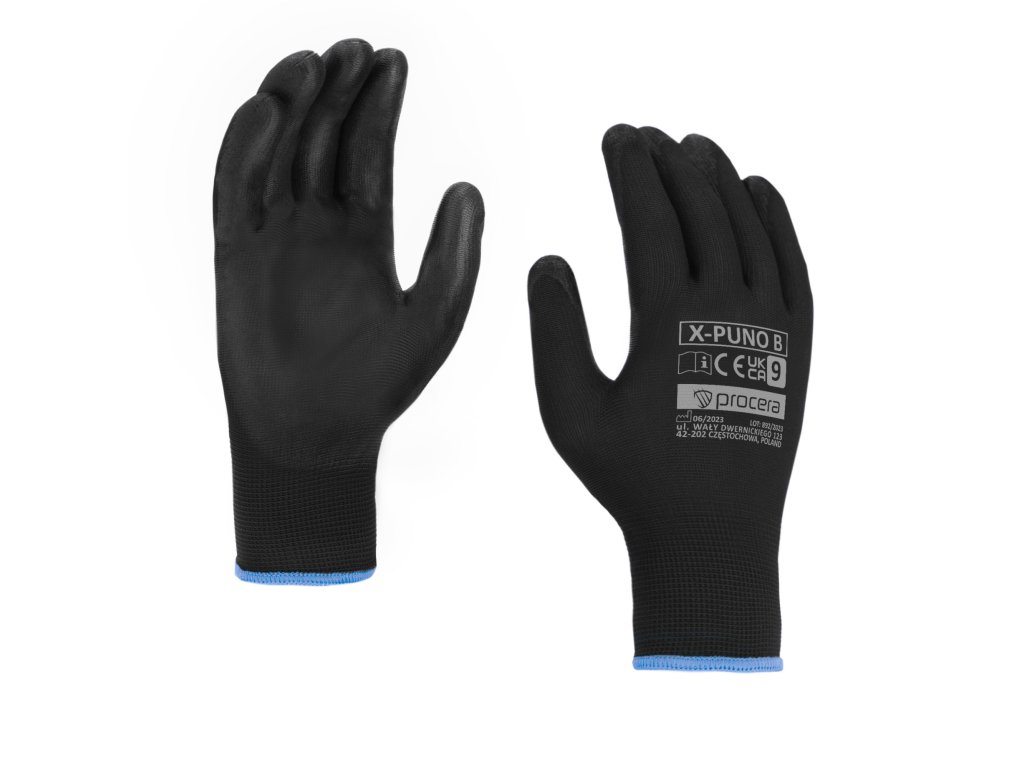 Rukavice X-PUNO BLACK vyrobené z polyesteru, potažené v části úchopu polyuretanem. Ideální pro manuální práci. Velmi dobrý pocit při držení předmětu. Dobře se přizpůsobují tvaru ruky. Roztažitelné a flexibilní. Konec s elastickým stahováním. Kategorizace I. Balení: karton 12/240. Barva: černá.