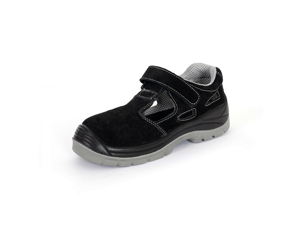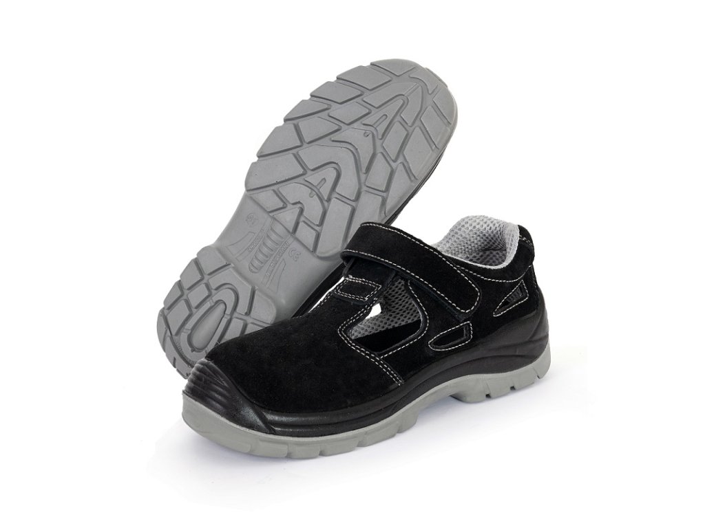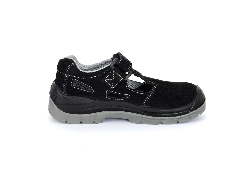 sandály KAMARI O1 bez podpatku. Svršek obuvi je vyroben z velurové kůže, zapínání na suchý zip. Podešev ze dvouvrstvého polyuretanu PU/PU, antistatická. Vnější vrstva tvrdší, vnitřní měkčí. Absorpce energie v oblasti paty. Podešev protiskluzová. Výstelka z materiálů s hygroskopickými vlastnostmi. Hluboký vzorek zajišťuje vysokou stabilitu obuvi a pohodlí při chůzi. Kategorie O1.